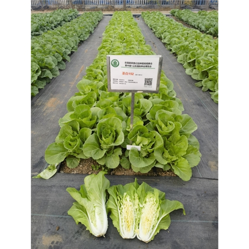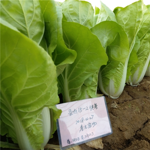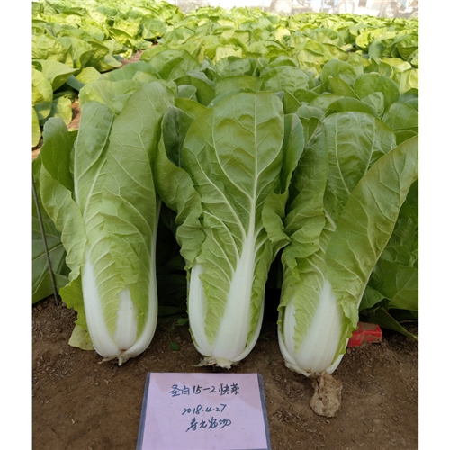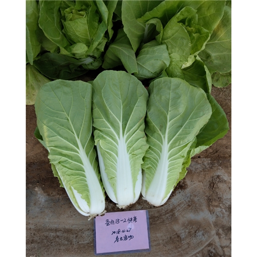 苗用白菜(快菜)一代杂种,食用部分主要为幼苗或半成株。外叶浅绿色,叶片宽倒卵形,叶面稍皱,无毛刺,叶较柔,叶帮白,帮较宽,品质佳。耐热、耐湿、耐雨水能力较强,抗根腐病,较耐抽臺。播种后 28-30天开始采收,株高约36厘米,单株重约400g。