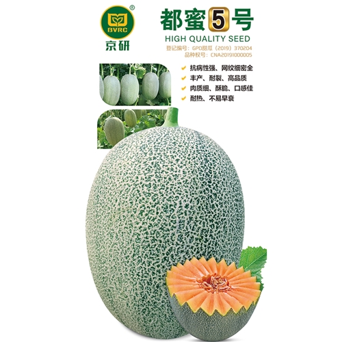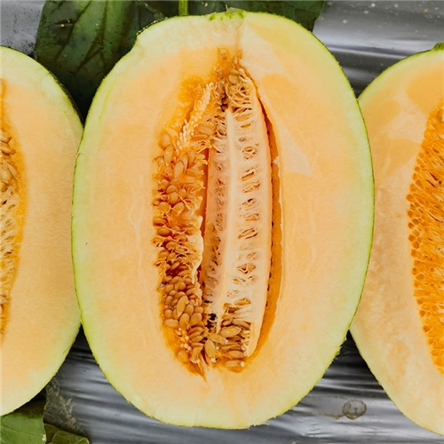 该品种植株生长势稳健,株型紧凑,抗病性强,耐热不易早衰,座果性好。果实发育期45天左右,全生育期110天左右。灰绿底,网纹细密全,外形美观果肉橘红,肉质细,酥脆,风味好,肉厚,中心可溶性固形含量18%左右,平均单果重2.5公斤左右,不易裂瓜,商品率高,耐储运。