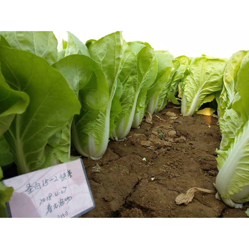 苗用白菜(快菜)一代杂种,食用部分主要为幼苗或半成株。外叶浅绿色,叶片宽倒卵形,叶面稍皱,无毛刺,叶较柔,叶帮白,帮较宽,品质佳。耐热、耐湿、耐雨水能力较强,抗根腐病,较耐抽臺。播种后 28-30天开始采收,株高约36厘米,单株重约400g。