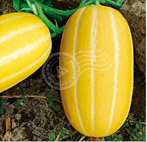 植株生长势强,早熟、雌花开放至果实成熟28天,果实椭圆形,成熟果面金黄色。果面有棱沟,极易挂果,单瓜重1.2公斤。果肉白色,肉质细脆爽口,味香纯正,中心含糖16%左右,抗病能力极强,适合我国各地保护地和露地栽培。
